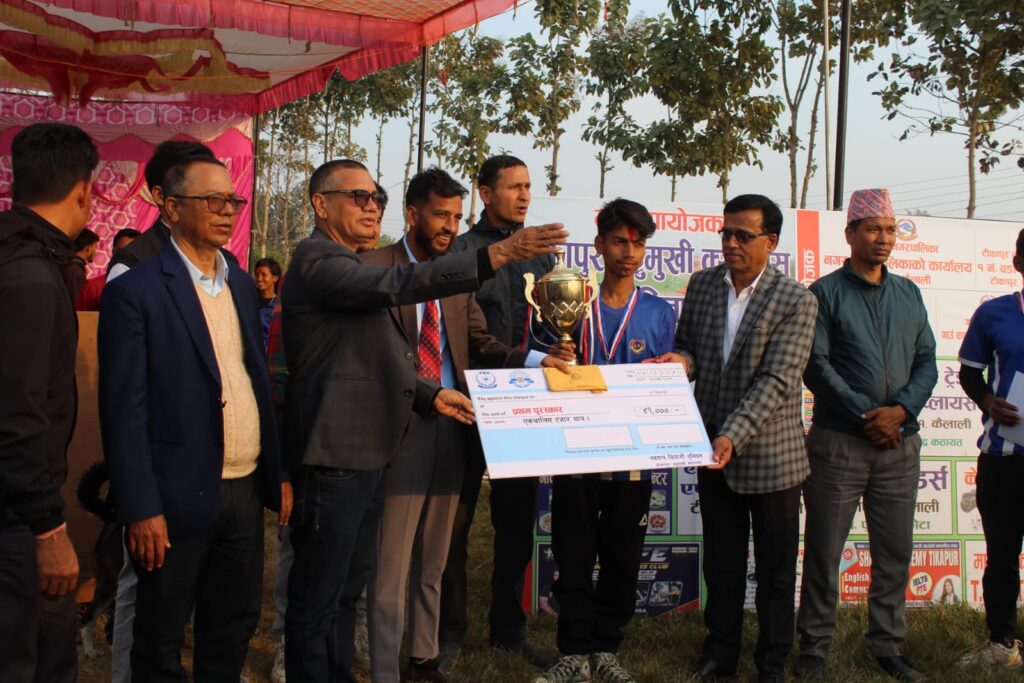 खेल क्षेत्रमा सम्भावना भएका बिद्यार्थीहरुलाई प्रोत्साहन गर्ने उद्देश्यका साथ प्रतियोगिता आयोजना गरिएको सभापति थापाले जानकारी दिए । सभापति थापाको अध्यक्षतामा भएको समापन कार्यक्रममा सुदुरपश्चिम विश्वविद्यालय कृषि संकायका डिन डा. विष्णु विलास अधिकारी प्रमुख अतिथी रहेका थिए । कार्यक्रममा टीकापुर बहुमुखी क्याम्पसका क्याम्पस प्रमुख ढविन्द्र रावल विशिष्ट अतिथी रहेका थिए । राजेन्द्र बुढाले स्वागत गरेको कार्यक्रमको सञ्चालन किरण साउँदले गरेका थिए ।