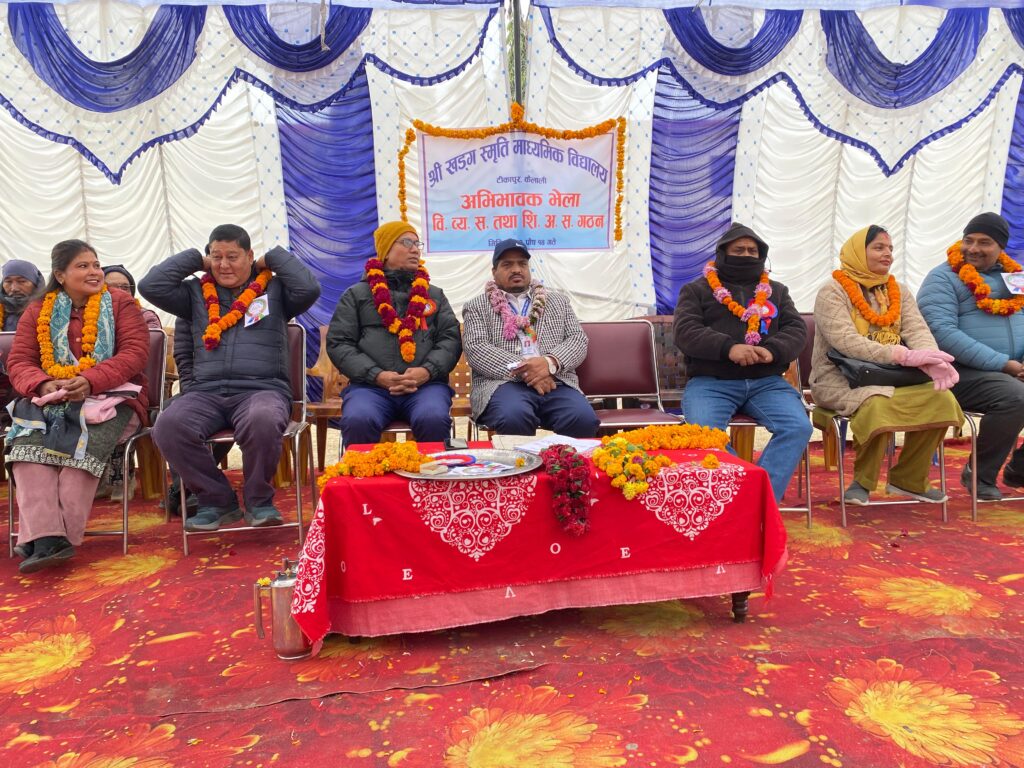 कार्यक्रममा विद्यालयक निवर्तमान प्रधानाध्यापक केशर बहादुर रावल, कर्णाली माध्यमिक विद्यालय टीकापुरका प्रधानाध्यापक धर्मराज शर्मा, विद्यालय व्यवस्थापन समितिका अध्यक्ष तर्कराज रेग्मी अभिभावक रुपा नाथ लगायतले कार्यक्रममा शुभकामना मन्तव्य राखेका थिए । विद्यालयका प्रधानाध्यापक झनकराज ओझाले स्वगात गरेको कार्यक्रमको सञ्चालन शिक्षक हिर्दयराज रेग्मीले गरेका थिए ।