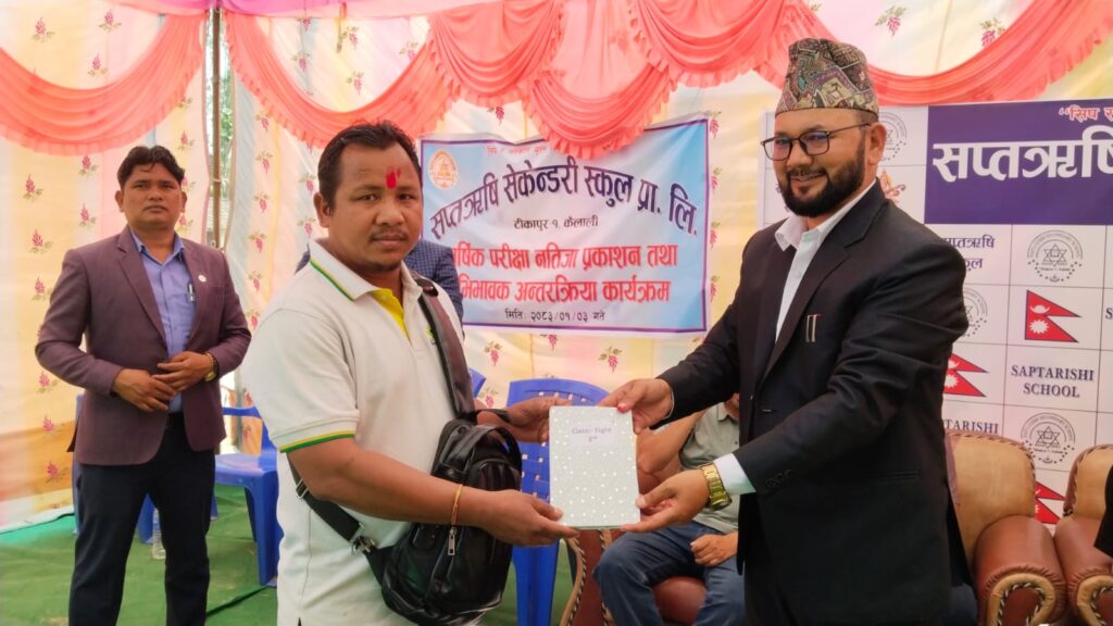 बिधालयले शैक्षिकसत्र २०८२ को वार्षिक परिक्षाको नतिजा प्रकाशित गर्दै शैक्षिकसत्र २०८३ का लागि अभिभावकसँग आवश्यक सुझाव सहितको अन्तरक्रिया कार्यक्रम बिहिवार सम्पन्न गरेको हो । विद्यालयक सञ्चालक समिति अध्यक्ष दिनेश कुमार थापाको अध्यक्ष्ातामा भएको कार्यक्रममा प्रधानाध्यापक लिखराम चाैधरीले विद्यालयले बिद्यार्थीहरुको शैक्षिक गुणस्तर वृद्धिका लागि सक्दो प्रयास गर्दै आएको बताएका छन् ।